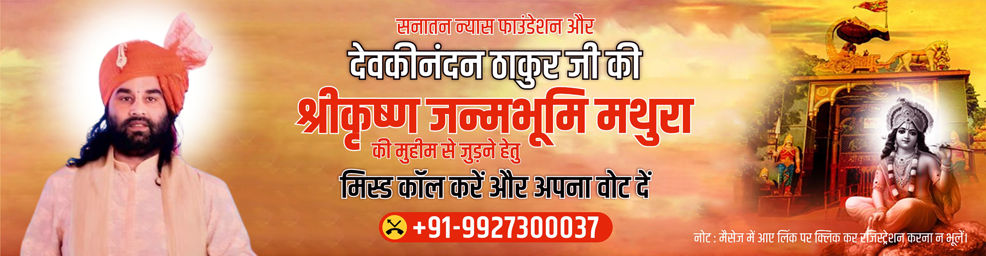 Join Shri Krishna Janmabhoomi Mukti Abhiyan, the campaign of His Holiness Shri Devkinandan Thakur Ji Maharaj in Mathura, India and provide your valuable vote and also get your family and friends to vote and share.